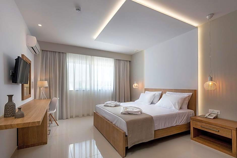 Modernly decorated room opening to a balcony with garden and pool views. It offers: